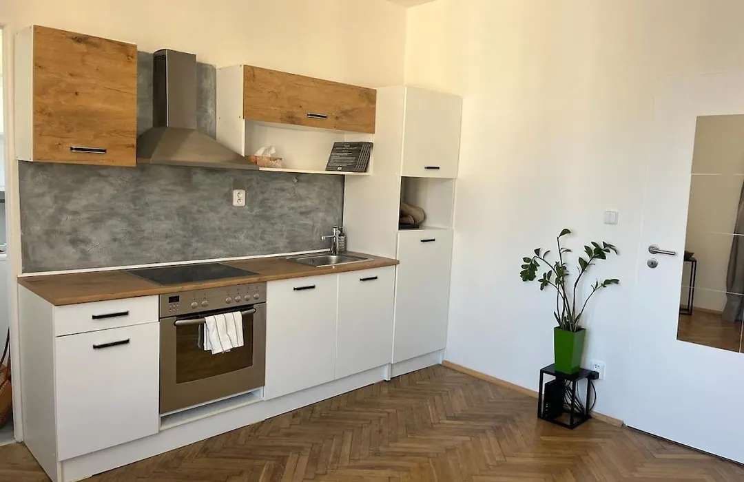 В апартаментах можно воспользоваться холодильником и духовкой, доступными на мини-кухне. Гости смогут отведать блюда современной кухни в ресторане Modry Bar, который располагается на расстоянии 8-минутной прогулки. Автобусная остановка Na Hrebenech находится всего в 650 метрах.